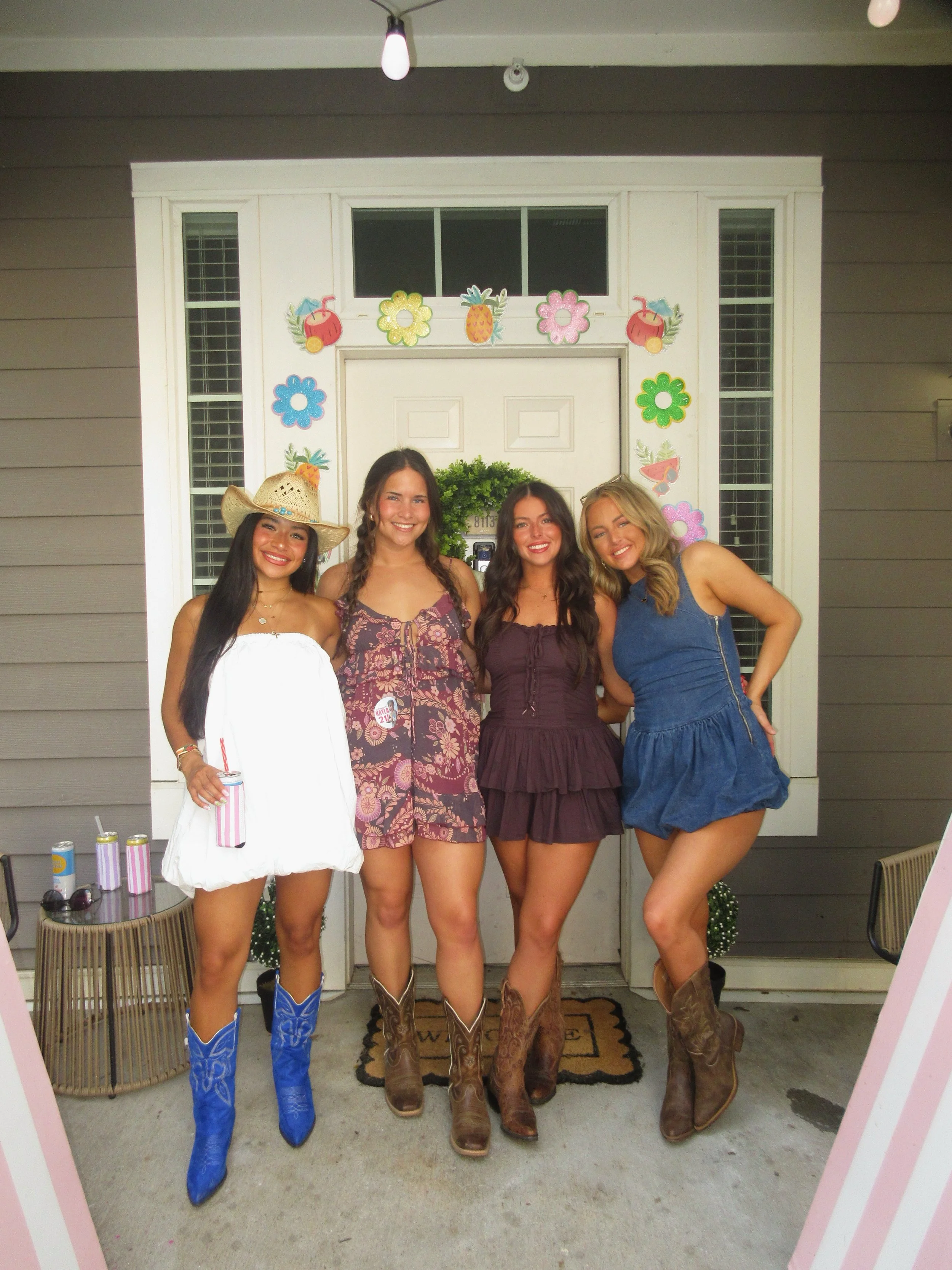 We’re Kayla, Katie, Olivia & Tessa — four friends chasing big dreams and sharing lots of laughs along the way. Kayla bleeds Alabama football, loves pink, shopping, and all things girly at Kentucky. Katie’s our Ohio animal lover studying to be a vet, rocking purple and gym life. Olivia keeps it sporty as a Kentucky sports comm student who’s always down for a fun night out in true Chicago fashion. Tessa’s our glam cosmetologist-in-training, Coke in hand, pup Daisy by her side. Together, we’re just a bunch of besties balancing school, passions, and plenty of fun!